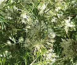 Crece hasta alcanzar un tamaño de entre 0,5 y 1,5 metros de altura.[2] Tiene las hojas profundamente lobuladas. Los últimos lóbulos tienen márgenes curvados y son de 1,5 a 3 cm de largo y 0,7 a 0,8 mm de ancho. Las flores son de color blanco o crema y aparecen entre agosto y septiembre (fines de invierno a principios de la primavera) en su área de distribución natural.[2][3]