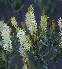 Por lo general, alcanza un tamaño de entre 0,6 y 2,5 metros de altura y produce las flores entre septiembre y enero (principios de primavera hasta mediados de verano) en su área de distribución natural. Estas tienen un color blanco, crema o amarillo pálido con el perianto blanco y el estilo de color crema.[2]