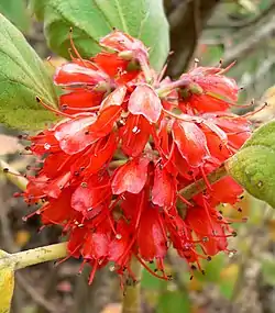 Greyia radlkoferi (Greyia lanuda o Greyia de Natal) es un arbusto o árbol, nativo de Sudáfrica.[1] Crece hasta 5 metros de altura y tiene la corteza lisa amarillenta, llegando a ser gris y profundamente madura conforme esta madura. Las hojas son ovales o tienen forma de corazón y lanuda en el envés, lo cual distingue a la especie de Greyia sutherlandii. Las flores escarlatas crecen en racimos verticales densos desde julio a octubre en el rango nativo de la especie.[1]