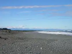 ![]() El monte Cook y otros picos desde la playa de Greymouth.