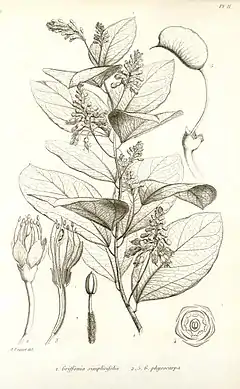 El género fue descrito por Henri Ernest Baillon y publicado en Adansonia 6: 188. 1865.[2] La especie tipo es: Griffonia physocarpa Baill.