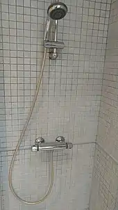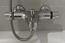 La temperatura del agua caliente se puede mantener constante, con un margen de error del sistema de control de aproximadamente un grado Celsius. Al igual que en el caso de los grifos de agua caliente sanitaria, los termostatos suelen estar equipados con un mecanismo de bloqueo en la palanca de funcionamiento, que debe desbloquearse para seleccionar temperaturas superiores a 38 °C. Algunos termostatos tienen un botón de ahorro de agua, que debe desbloquearse para obtener el máximo caudal posible.