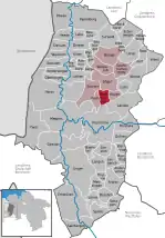 Se encuentra ubicado a poca distancia al este de la frontera con Países Bajos y al norte de la del estado de Renania del Norte-Westfalia.