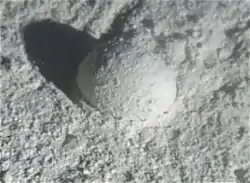 Fue descubierta en 2000, a lo largo del margen del mar arábigo, a profundidades de 1.163 a 1.194 metros (3.816 a 3.917 pies). Las muestras varían en tamaño de 4,7 a 38 milímetros (0,19 a 1,50 pulgadas) de diámetro. La testa (cáscara orgánica) suele ser de forma esférica y con poros en forma de panal. Hay filamentos en la parte inferior del organismo, donde está en contacto con el fondo marino, y en su mayoría está lleno de estercomatas (gránulos de desecho).[1]