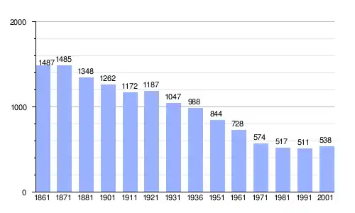 Gráfica de evolución demográfica de Grondona entre 1861 y 2001 |