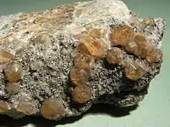 ![]() Grossularia dodecaédrica (≈ 7 cm), de Coahuila, México | ||