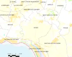 Grues es una población y comuna francesa, en la región de Países del Loira, departamento de Vendée, en el distrito de Fontenay-le-Comte y cantón de Luçon.