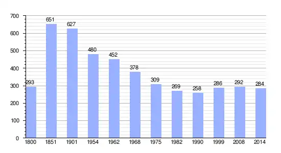 Gráfica de evolución demográfica de Grugé-l'Hôpital entre 1800 y 2014 |