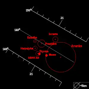 Basado en el tamaño de los satélites, los asteroides originales pueden haber sido de unos 28 km de diámetro. Dado que este valor se encuentra cerca del diámetro aproximado del mismo Ananke, es probable que el órgano del que depende, en gran medida, no fue interrumpido.
