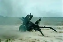 El almacén de municiones estaba a 200 metros de las piezas, por lo que los hombres de la Fuerza Aérea Argentina ayudaron a llevarlas a los cañones.[18]