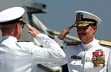 El 6 de agosto de 2004, el contraalmirante Robert J. Cox relevó al contraalmirante Robert T. Moeller como comandante del Grupo de Destructores-Cruceros Uno (en inglés: Commander Cruiser-Destroyer Group One, CCDG-1) y su Grupo de Ataque de Portaaviones Ronald Reagan en una ceremonia de cambio de mando realizada en la cubierta de vuelo del portaaviones USS Ronald Reagan (CVN-76). La siguiente designación del almirante Moeller fue como Director, Planes y Políticas (en inglés: Director, Plans and Policy, J-5) en el Comando Central de Estados Unidos (en inglés: U.S. Central Command, CENTCOM).[9]
