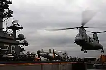 No. 3 | USS Higgins (DDG-76)[Nota 1] | Escuadrón 147 de Caza y Ataque (VFA-147): 12 F/A-18E | Escuadrón 4 de Helicópteros Antisubmarinos (HS-4): 5 SH-60F & 3 HH-60H |