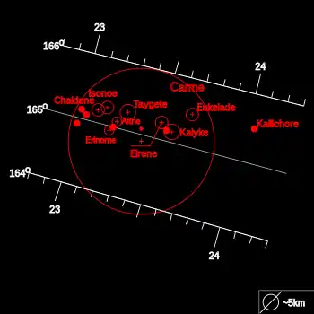 Eukélade | 4 | 9,0×1013 | 23.661.000 | 746,390 | 165,482 | 0,2721 |