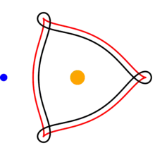Aunque el triángulo es casi equilátero, existe cierta asimetría. Debido a la excentricidad de la órbita de Júpiter, los puntos de Lagrange L4-L5 difieren ligeramente de los otros puntos. Cuando Júpiter está en su afelio, la velocidad media de los objetos que se mueven a lo largo de este lado es algo menor que la de los objetos que se mueven a lo largo de los otros dos lados. Cuando Júpiter está en su perihelio, se produce lo contrario.