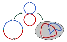 La definición en términos de esferas, la operación de dos mapas f y g: Sn → X se define como la composición de dos mapas Ψ y h, donde Ψ es el mapa de Sn en el producto cuña de dos n-esferas que colapsan en el ecuador, y h es el mapa del producto cuña de dos n-esferas en X tales que f está definido en la primera y g en la segunda.
