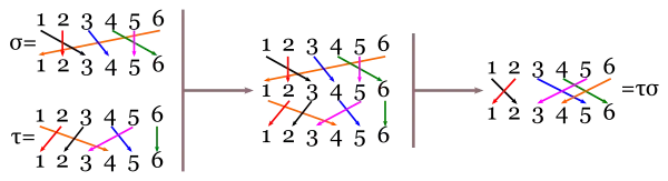 Dada dos permutaciones, su composición se realiza siguiendo las reglas usuales de composición de funciones:
