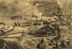 Carl Anton Larsen, noruego nacionalizado británico[27] y director de la Compañía Argentina de Pesca, organizó la construcción de Puerto Grytviken;[20] un trabajo notable hecho por 60 noruegos, originarios de Vestfold, que comenzó con su llegada el 16 de noviembre hasta la finalización de las obras de la fábrica de aceite de ballena, que comenzó su producción el 22 de diciembre de 1904. Tiempo después llegaron a la isla argentinos e inmigrantes suecos.[20] La construcción de la factoría también tuvo un mayoritario empleo de material y equipamiento noruego. De hecho su primer buque ballenero, el Fortuna, fue construido en Sandefjord, en Vestfold.[1] Las primeras edificaciones y viviendas eran casas desmontables de madera también construidas en Noruega.[24]