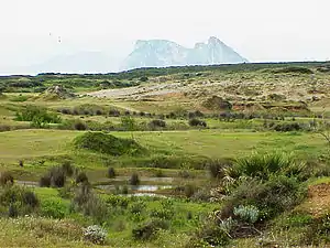 Está compuesta por la playa,[2] duna costera,[3] humedales endorreicos y lagunas de inundación temporal (algunos de los cuales fueron producto de la extracción de áridos para la construcción), un pequeño estuario, alcornocal costeros y bosque mediterráneo, con un alto valor ecológico.
