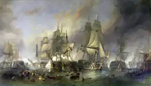 ![]() La batalla de Trafalgar, el 21 de octubre de 1805. Pintura de Clarkson Frederick Stanfield. | ||||