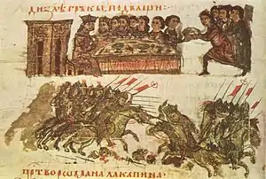 Teófanes Continuatus sobre el ejército búlgaro en Constantinopla.[85] |