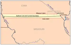 La disputa fue resuelta finalmente por la Corte Suprema de los Estados Unidos a favor de Iowa. Como resultado de esa decisión, una franja de tierra fue añadida al territorio de Iowa en el sudeste extremo del estado; hoy esta sección contiene la ciudad de Keokuk.