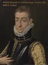 - Los Guastalla eran una rama menor de los Gonzaga que habían recibido la localidad homónima en 1539 de Carlos V, que la separó para ello del ducado de Milán formalmente dos años después.[8] El principado de Fernando Gonzaga pasó a ser ducado por decreto imperial en 1621.[8]