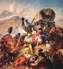 Por otra parte, la mayor parte de la población autóctona desapareció. En parte por el mestizaje,[10] en parte por los enfrentamientos con los europeos y otros pueblos y especialmente por la viruela llegada en los barcos,[11] A su vez, los demás reinos negros se formalizaron hacia el siglo XIX con tribus venidas de más al norte.[12] Esta situación ha sido esgrimida por los afrikáneres para reivindicar que ellos no poblaron el país, sino que lo crearon en el siglo XVII cuando los demás pobladores llegaron doscientos años después. Además, contribuyó a forjar el sentimiento de no aceptar a los descendientes de aquellos negros como compatriotas suyos y querer darles la independencia, mientras pretendían anexionar el África del Suroeste, después Namibia, con una población afrikaneer considerable antes de su ocupación después de la Primera Guerra Mundial.