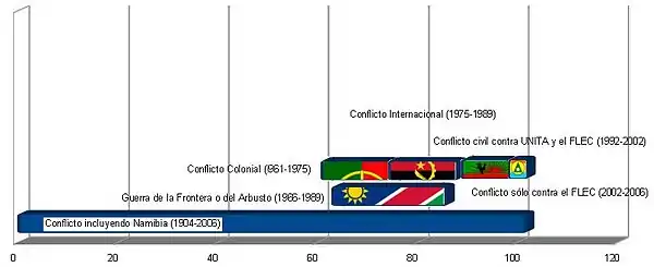 Pese a existir discrepancias, se libró entre 1966 y 1988 por tropas sudafricanas junto a la organización angoleña UNITA, contra los namibios miembros de la SWAPO, miembros del Congreso Nacional Africano sudafricano, soldados de Angola y asesores enviados por Cuba y la URSS. En ella participaron indirectamente junto a Sudáfrica o sus aliados Estados Unidos, Israel, Reino Unido, Francia, Alemania e Irán (antes de la Revolución islámica) y la URSS al lado de los cubanos y angoleños que luchaban junto a la SWAPO. Por otra parte, la guerra reclutó un número indeterminado de mercenarios occidentales.