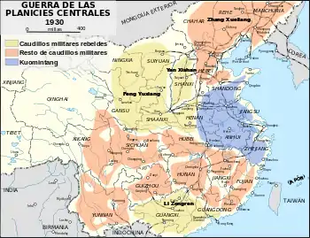Durante la consolidación del poder por el Guomindang en la Expedición del Norte de 1927-1928, Chiang había forjado alianzas con los ejércitos de los caudillos militares Yan, Feng y Li. Pero pronto se estropearon, dando lugar a una guerra que casi acaba con el gobierno nacionalista de Chiang y costó más de trescientas mil bajas. Pero la victoria de Chiang le permitió consolidar aún más el poder como el caudillo indiscutible de la mayor parte de China.