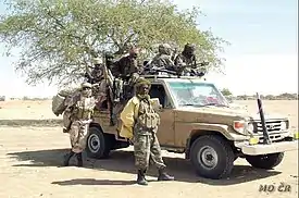 La guerra de los Toyota es el apodo de un conflicto que involucró a los estados de Libia, Chad, y Francia, último episodio de las guerras intermitentes entre Libia y Chad por la Franja de Aouzou que empezaron en 1973. El nombre del conflicto se debe a la preferencia entre los soldados chadianos por usar camionetas Toyota para atravesar el desierto[7] al enfrentarse a los vehículos blindados libios. A diferencia de episodios anteriores de la disputa, la guerra fue una derrota contundente para las fuerzas libias. Según fuentes estadounidenses, 7.500 soldados libios murieron en las escaramuzas, y dicho Estado perdió unos 1.500 millones de dólares en equipo militar.[8] Bajas chadianas incluyeron 1.000 muertos.[9]