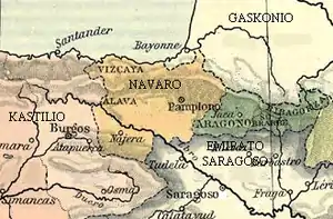 - El catedrático José María Lacarra pone en duda que hubiera tal conflicto. Véase en Lacarra, José María (1975). Historia del reino de Navarra en la Edad Media. Caja de Ahorros de Navarra. p. 69. ISBN 84-500-7465-7. OCLC 3386289. Consultado el 19 de enero de 2021.