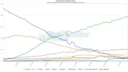 Google Chrome (59,69%) Safari (13,85%) UC Browser (7,03%) Firefox (5,02%) Opera (3,35%) Internet Explorer (3,01%) sin información (8,05%).[1]