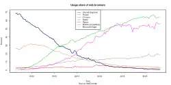 La batalla de los navegadores se libra actualmente entre los seis principales navegadores: Internet Explorer, Microsoft Edge, Mozilla Firefox, Chrome, Safari y Opera, pero especialmente entre Microsoft Edge, Mozilla Firefox y Google Chrome, que son los más usados actualmente. El más popular, Chrome, se había presentado también como un rival notable, debido a su arquitectura multiproceso, interfaz ligera, carga rápida y el hecho de que Google tiene un gran capital detrás, para hacer publicidad de su navegador en un sin fin de páginas (un ejemplo de ello sería YouTube y el buscador de Google), muchos piensan[¿quién?] que este es el motivo por el cual ha tenido tanto éxito.