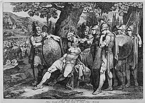 Epaminondas dio entonces la orden de avanzar, cogiendo al enemigo desprevenido, y provocando una furiosa lucha en el campamento mantineo para prepararse para la batalla. La batalla se desarrolló como Epaminondas había planeado.[97] Las fuerzas de caballería de las alas hicieron retroceder a la caballería ateniense y mantinea que tenían enfrente. Diodoro dice que la caballería ateniense del ala derecha mantinea, aunque no era inferior en calidad, no pudo resistir los proyectiles de las tropas ligeras que Epaminondas había colocado entre la caballería tebana. Mientras tanto, la infantería tebana avanzaba. Jenofonte describe de forma evocadora el pensamiento de Epaminondas: «[él] llevó adelante su ejército de proa, como una trirreme, creyendo que si podía golpear y cortar por cualquier lado, destruiría a todo el ejército de sus adversarios».[94] Como en Leuctra, la debilitada ala derecha recibió la orden de contenerse y evitar la lucha. En el choque de la infantería, la cuestión quedó brevemente en suspenso, pero entonces el ala izquierda tebana rompió la línea espartana y toda la falange enemiga fue puesta en fuga. Sin embargo, en el momento álgido de la batalla, Epaminondas fue herido de muerte por un espartano y murió poco después. Tras su muerte, los tebanos y los aliados no se esforzaron en perseguir al enemigo que huía; testimonio de la importancia de Epaminondas en el esfuerzo bélico.[98]