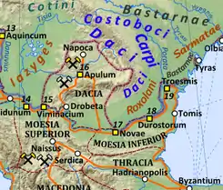 ![]() Provincia romana de Dacia en el siglo ii | ||||