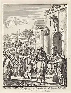 Unos días después, los otomanos capturaron y saquearon El Cairo,[7] capturando al califa al-Mutawakkil III.[10] Tuman Bay reagrupó a sus tropas en Giza, donde finalmente fue capturado y ahorcado en la puerta de El Cairo.[2][11]