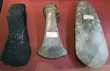 El comienzo del Calcolítico se caracteriza por la aparición en el registro arqueológico de dagas, hachas y otros objetos de cobre. En la mayoría de los casos estas armas eran demasiado caras y maleables como para ser armas eficientes, y los investigadores les asignan, en su mayor parte, un rol de instrumento ceremonial. En cambio, la Edad del Bronce se caracteriza por la extensión del uso de armas ya claramente eficientes realizadas con dicha aleación.