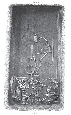 En la década de 1870, el arqueólogo y etnógrafo Hjalmar Stolpe (1841-1905) excavó una cámara funeraria como parte de su investigación arqueológica en el yacimiento de la época vikinga de Birka, en la isla de Björkö, en la actual Suecia. En 1889 documentó la tumba como Bj 581.[1][2] Ha sido considerada «una de las tumbas más emblemáticas de la época vikinga».[3] La tumba estaba señalada por una gran roca de piedra y se encontraba en una terraza elevada donde estaba en contacto directo con la guarnición.[4] La cámara funeraria era de madera y tenía 3,45 m de largo y 1,75 m de ancho. El cuerpo fue hallado en posición sentada con prendas de seda y adornos de hilo de plata.[5] Los bienes encontrados en la tumba incluían «una espada, un hacha, una lanza, flechas perforadoras, un cuchillo de batalla, dos escudos y dos caballos, una yegua y un semental».[4] Durante los siguientes 128 años, se asumió que el esqueleto era el de un «hombre endurecido en la batalla».[6] El guerrero llegó a ser comparado con «un personaje de la Cabalgata de las valquirias, de Richard Wagner».[7]