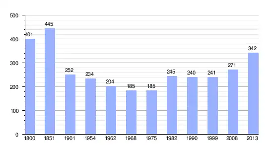 Gráfica de evolución demográfica de Guilmécourt entre 1800 y 2013 |