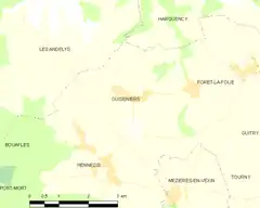 - Situación de Guiseniers en un mapa de Francia y de comunas limítrofes (en francés)