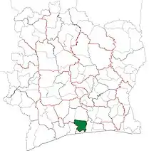 Se encuentra ubicado al sur del país, cerca de la desembocadura del río Bandama.