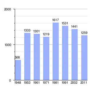 Gráfica de evolución demográfica de Gunaroš entre 1948 y 2011 |