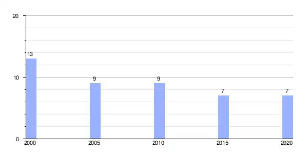Gráfica de evolución demográfica de Guntiñas entre 2000 y 2020 |