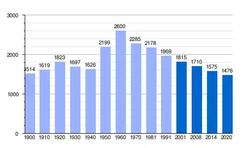 Población de hecho (1900-1991) según los censos de población del INE. Población de derecho (2001 en adelante) según el padrón municipal, datos del INE. |
