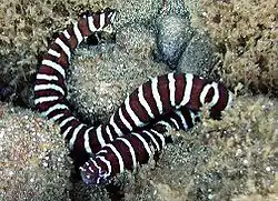 La morena cebra (Gymnomuraena zebra) es una especie de peces de la familia de los morénidas en el orden de los Anguilliformes.