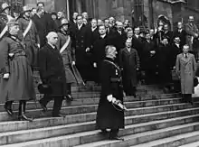 El proceso de fascistización de Gömbös avanzó en 1935: se reavivó la actividad de las sociedades secretas, se comenzó a armar a algunas de ellas, se favoreció la agitación de las organizaciones estudiantiles profascistas y antisemitas, se adoptó un culto a la persona de Gömbös como caudillo de la nación —para intenso disgusto del regente— y los medios oficiales adoptaron un tono claramente fascista.[123] Al año siguiente, Gömbös empezó a amenazar veladamente a los empresarios judíos, enviando formularios sobre la religión de sus empleados y presionando para parte de los empleos pasasen a los graduados fascistas.[123] En 1936, Gömbös presumió ante Hermann Göring de que, en dos años, Hungría sería completamente reorganizada según el modelo fascista con él como dictador.[121][124] Sin embargo, Gömbös nunca vio realizados sus ambiciosos planes.[121] Tras un prolongado ataque de enfermedad del riñón, murió en un sanatorio en las cercanías de Múnich el 6 de octubre[125] de 1936 de fallo renal.[120][126][127][104] Según Horthy, solo su enfermedad mortal evitó que lo destituyese del cargo, aunque el embajador alemán dudaba de que hubiese podido hacerlo.[128]