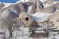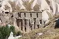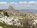 - Las cenizas volcánicas de la Anatolia central han sido fuertemente erosionadas en badlands, las casas piramidales, los establos, los palomares, las capillas de Capadocia fueron acondicionadas por frailes y ermitaños cristianos.[7]