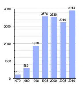 Gráfica de evolución demográfica de Hércules entre 1970 y 2010 |