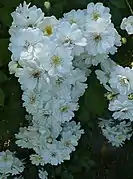 Son arbustos compactos, muy espesos, cargados de flores pequeñas. Ramilletes compuestos en general de 7 a 25 flores pequeñas, pentapétalas, simples o dobles.