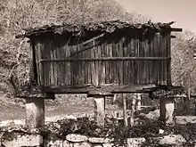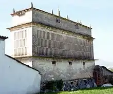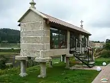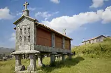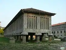 El hórreo gallego es un tipo específico de hórreo de Galicia, una construcción de uso agrícola destinada a secar, curar y guardar el maíz y otros cereales antes de desgranarlos y molerlos.[1] Consta de una cámara de almacenaje oblonga, estrecha y permeable al paso del aire, separada del suelo para evitar la entrada de humedad y animales.
